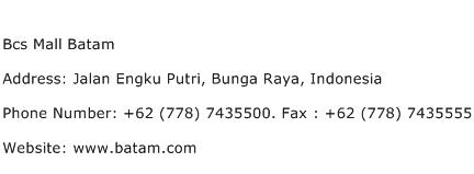 Bcs Mall Batam Contact Phone Number is : +62 (778) 7435500. Fax : +62 (778) 7435555