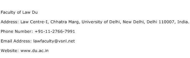 The contact number of Faculty of Law Du is +91-11-2766-7991.Email Address of Faculty of Law Du